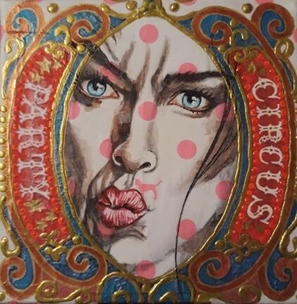 FARNELL - PARTY CIRCUS mixtura sobre papel y tela, 20X20 cms.
