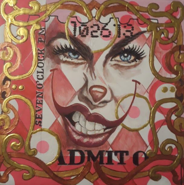 FARNELL - THE SHOW MUST mixtura sobre papel y tela 20X20 cms.