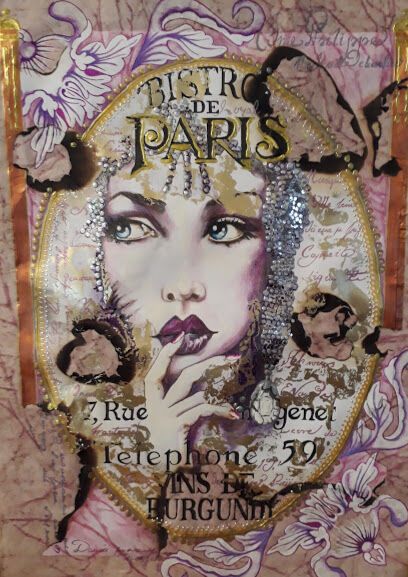 Bistro de Paris, mixed media on burned paper, 40X55 cms.